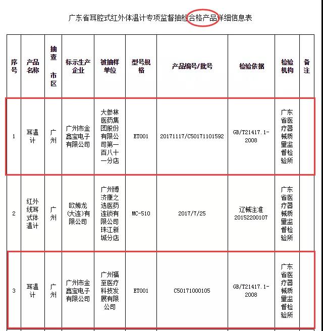 廣東省藥監(jiān)局此次抽查合格產(chǎn)品名單上,倍爾康耳溫計ET001榜上有名!