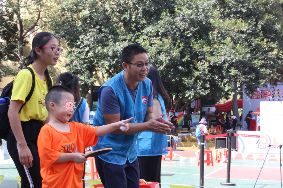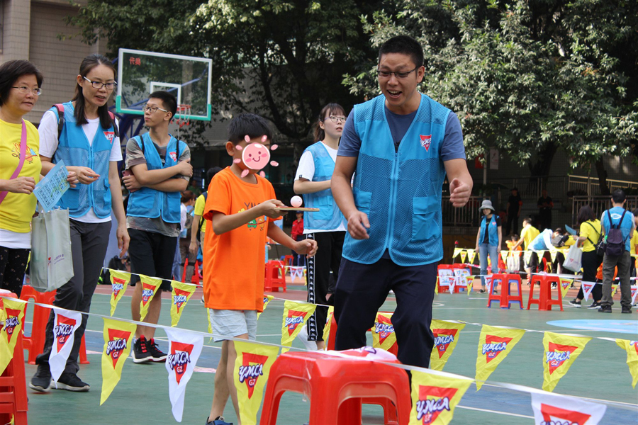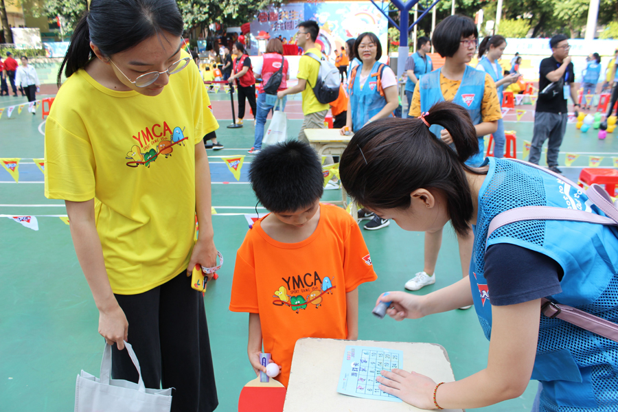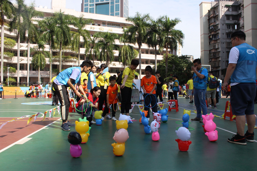在運(yùn)動會上,倍爾康的義工們參與負(fù)責(zé)的游戲項(xiàng)目是——快樂乒乒乓乓。