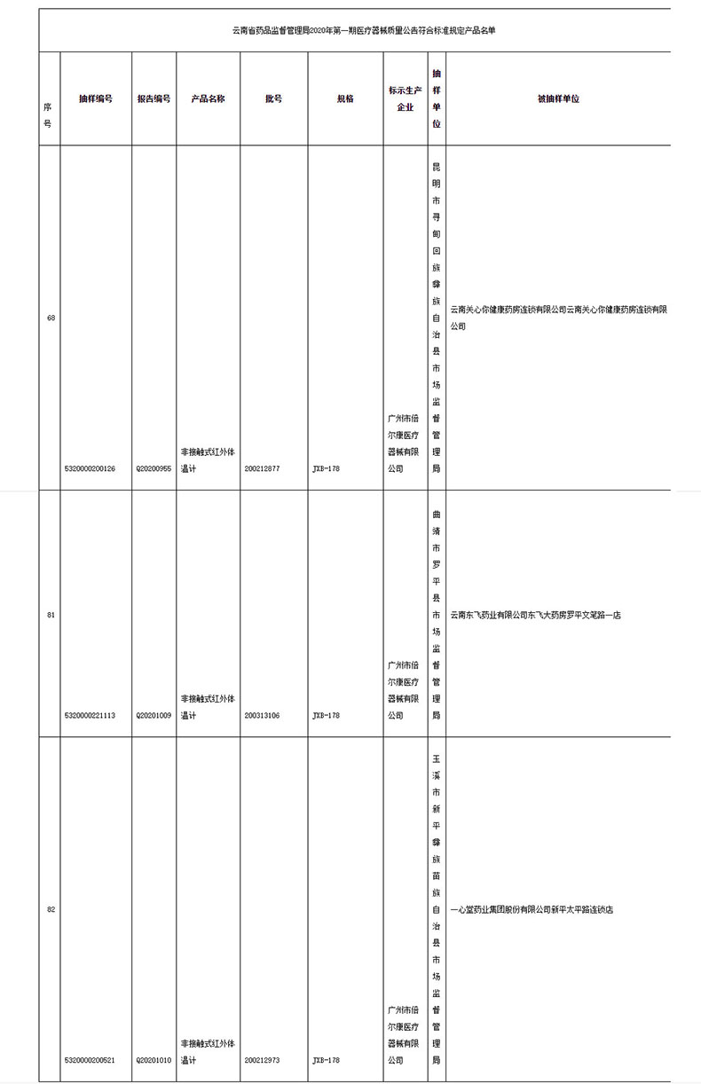 日前,云南省藥品監(jiān)督管理局發(fā)布2020年第一期醫(yī)療器械質量公告,倍爾康的非接觸式紅外體溫計JXB-178被抽樣檢查,并順利通過質量監(jiān)督!