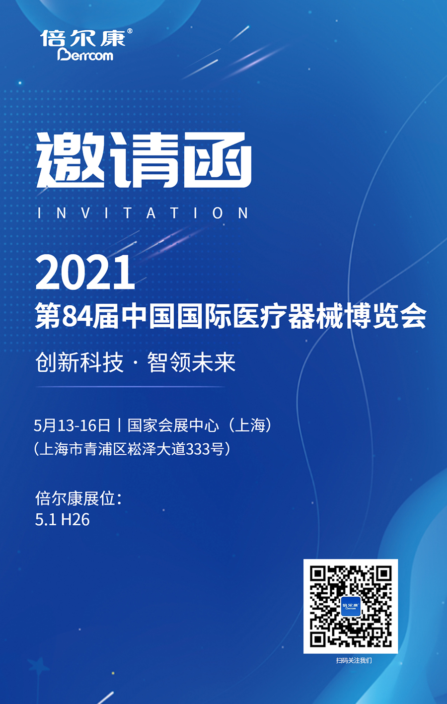 2021年5月13日-16日,以“創(chuàng)新科技 智領(lǐng)未來”為主題的第84屆CMEF中國國際醫(yī)療器械博覽會將于國家會展中心(上海)盛大開幕,在這場產(chǎn)品與學(xué)術(shù)交融的行業(yè)盛宴上,倍爾康將攜非接觸式紅外體溫計(jì)在5.1館H26展位精彩亮相!