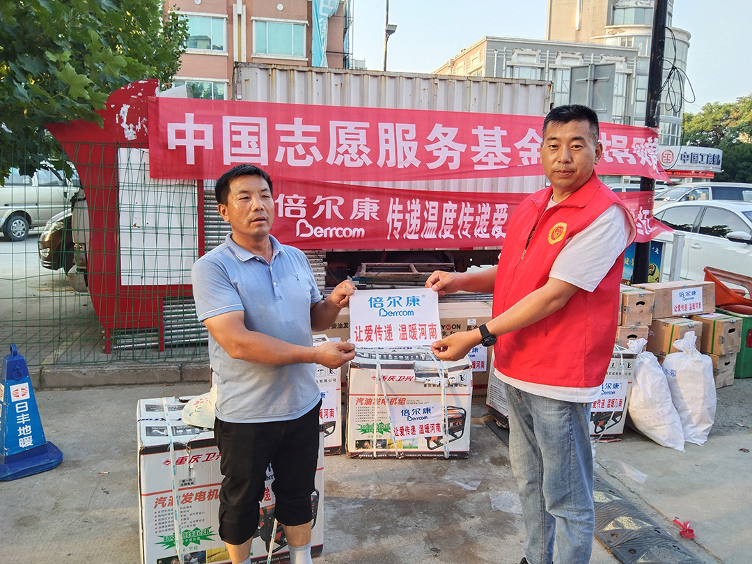 7月29日,倍爾康再次聯(lián)合公益組織——中國(guó)志愿服務(wù)基金會(huì),向河南周口、安陽、新鄉(xiāng)三地捐贈(zèng)了救援物資:9臺(tái)玉柴發(fā)電機(jī),20臺(tái)污水泵以及20支排水管,共計(jì)10萬元。