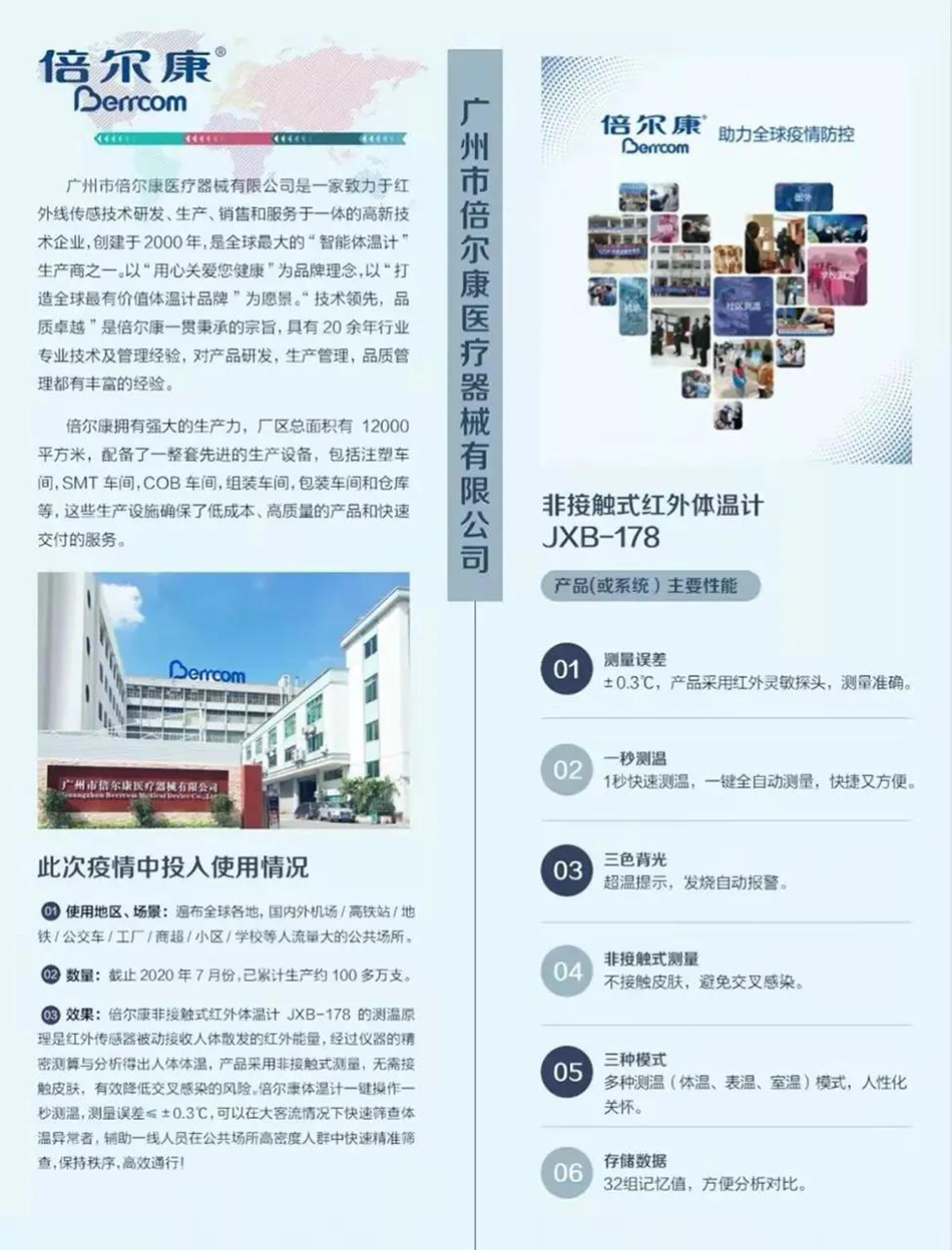 二十年來,倍爾康都致力于紅外線傳感技術(shù)研發(fā)、生產(chǎn)、銷售和服務(wù),產(chǎn)品率先通過ISO 13485認(rèn)證,符合國內(nèi)醫(yī)療標(biāo)準(zhǔn)和國際質(zhì)量認(rèn)證醫(yī)療CE、FDA標(biāo)準(zhǔn)以及歐盟環(huán)保ROHS標(biāo)準(zhǔn),獲多項(xiàng)專利和殊榮,如“聚光杯專利證書”、“軟件注冊(cè)證書”、“臨床驗(yàn)證證書”和“高新科技證書”等,嚴(yán)格實(shí)施行業(yè)標(biāo)準(zhǔn),以技術(shù)著稱,以專業(yè)說話,在體溫計(jì)行業(yè)樹立了品牌典范。