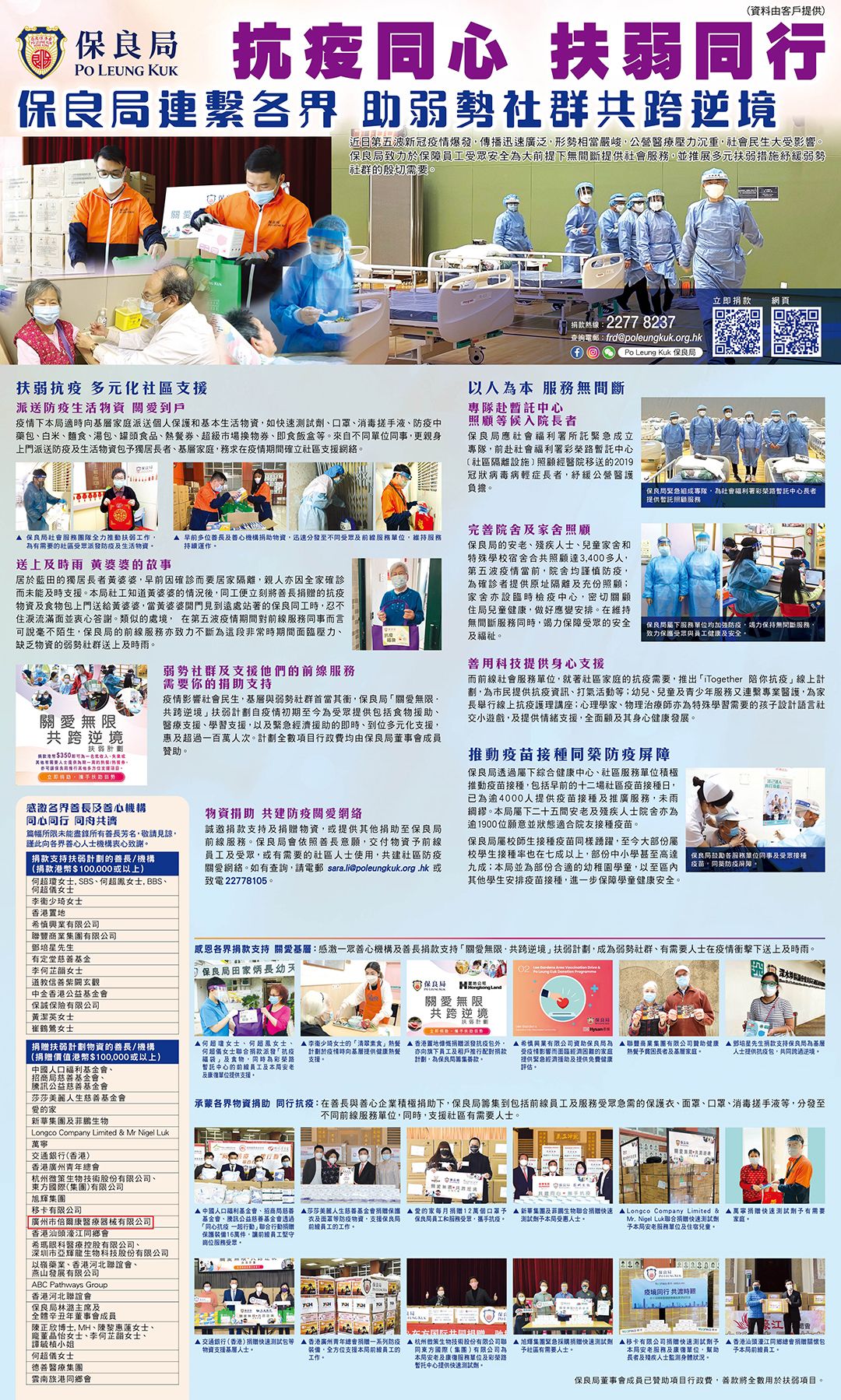 倍爾康專(zhuān)項(xiàng)工作小組與各合作方緊密配合,在確??挂呔栀?zèng)流程和規(guī)范下,妥善完成本次捐助活動(dòng),盡最大力量支援前線的醫(yī)護(hù)及一線社區(qū)工作人員,齊心協(xié)力阻止病毒再度蔓延。目前,相應(yīng)物資已送予東華三院、保良局、香港明愛(ài)。