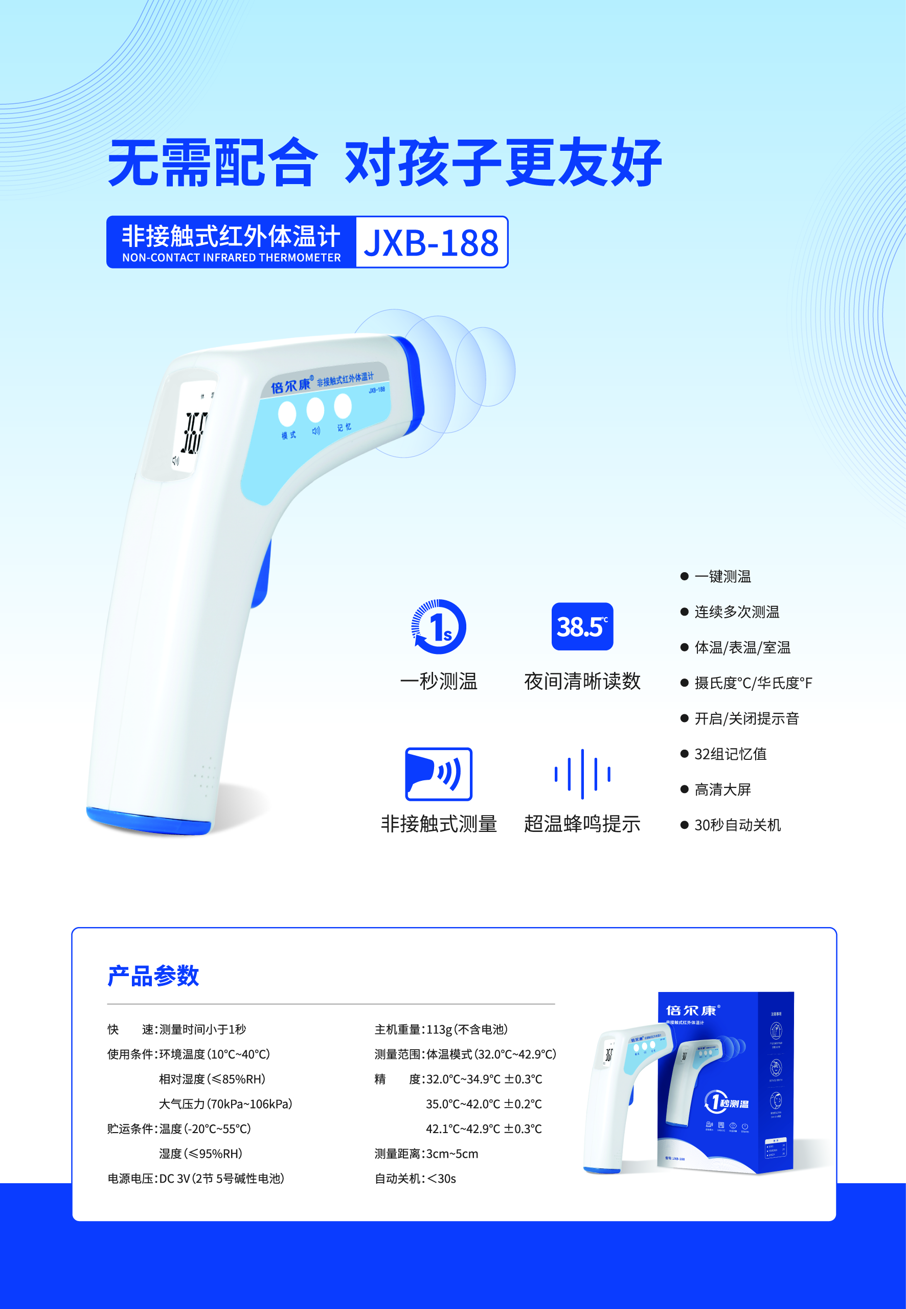 非接觸式紅外體溫計(jì) JXB-188