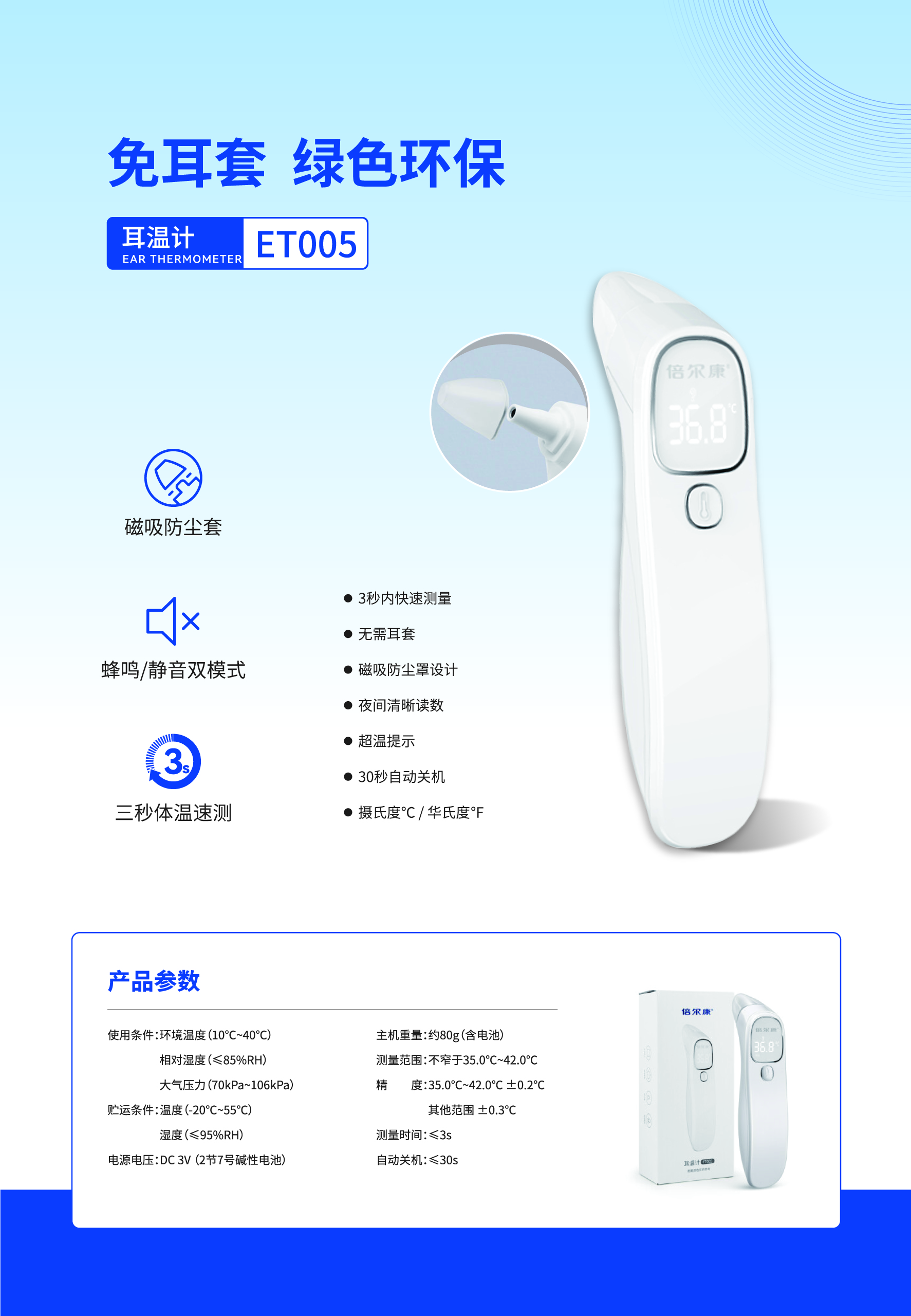 靈敏探頭,精準(zhǔn)測(cè)溫,無(wú)耳套設(shè)計(jì),可連續(xù)測(cè)溫