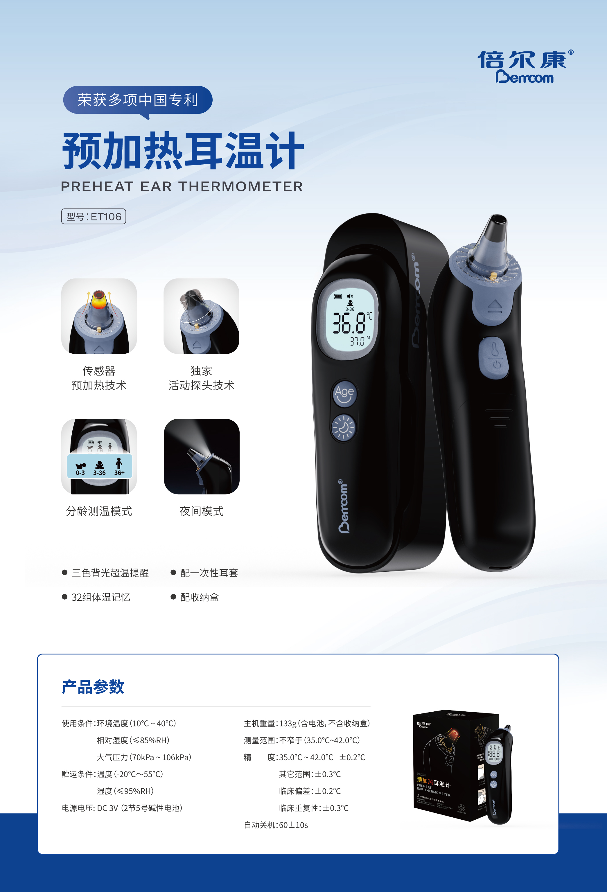 預(yù)加熱耳溫計(jì),準(zhǔn)確舒適測溫